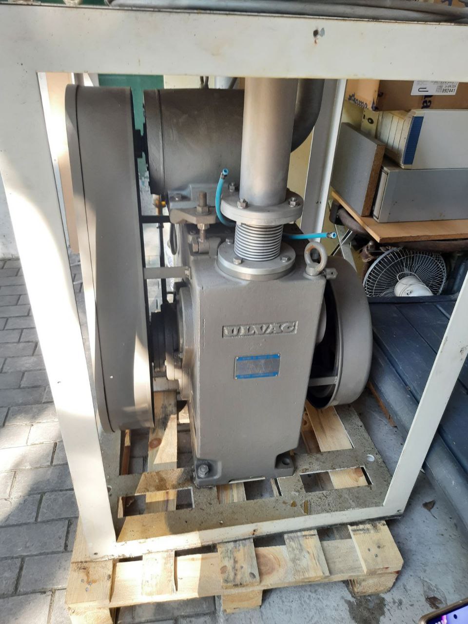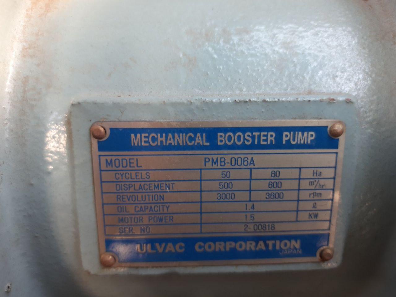 Відкачний вакуумний пост на основі насосів Ulvac PMB-006A (8000 л/хв) і Ulvac PKS-030 (300 л/хв) дозволяє відкачувати робочий об’єм до граничного тиску 3·10-3 мм рт.ст.  Живлення від трифазної мережі 220В.  Потребує додаткової комутації для підключення до нашої трифазної мережі 380В.